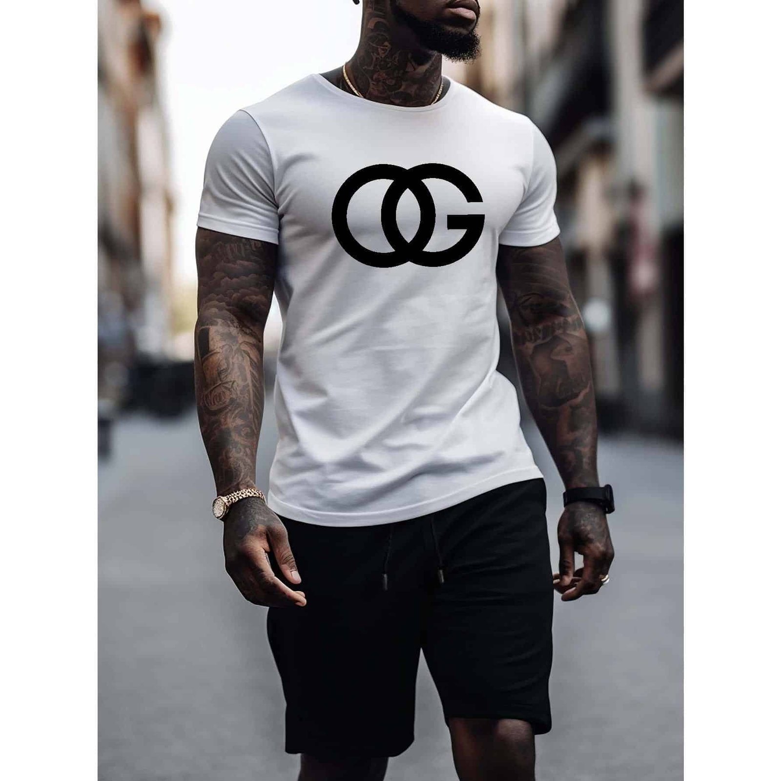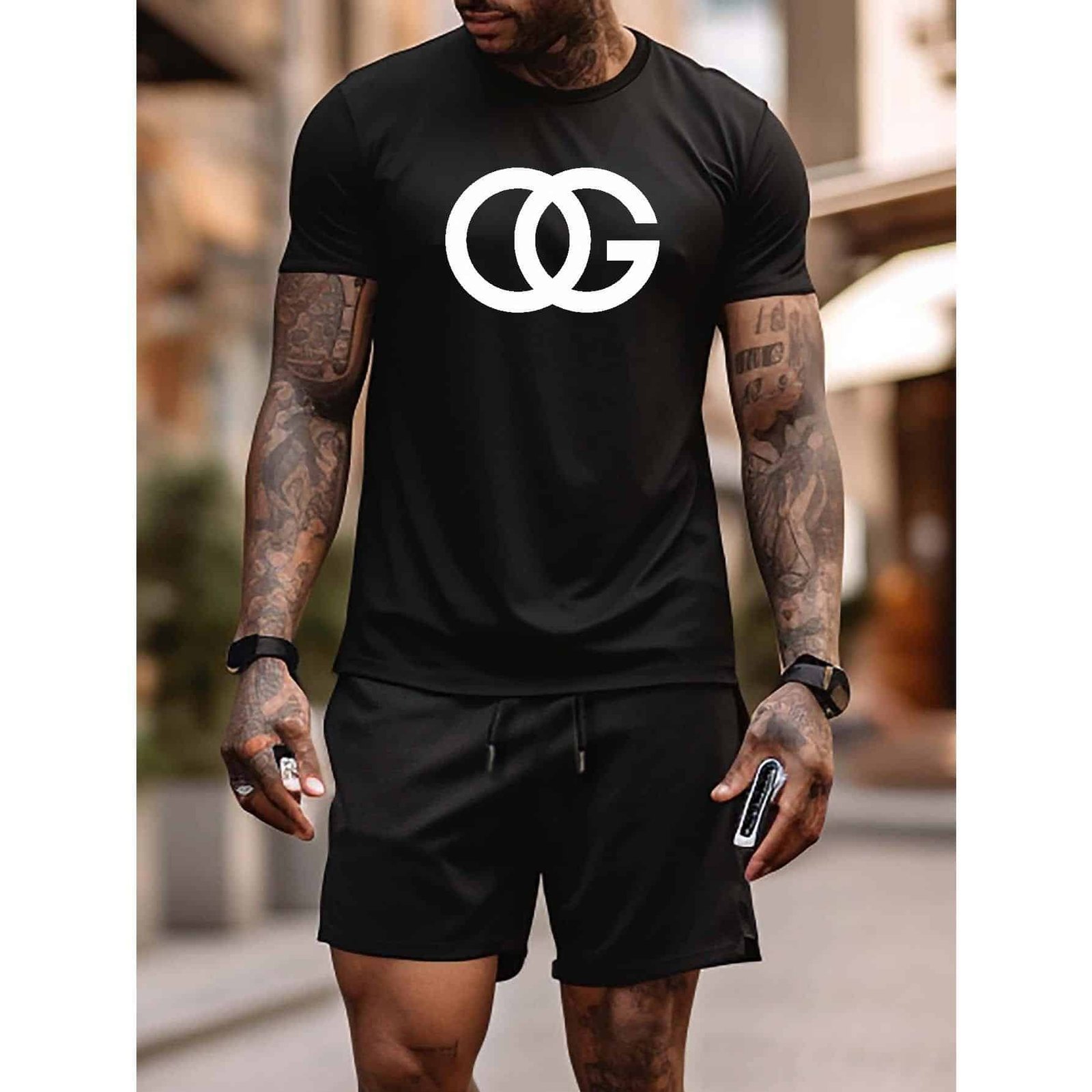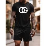 Be the first to review “100% Cotton Plus Size Set: “OG” Crossing Letter Graphic Print T-Shirt for Summer, Men’s Thin Casual Shorts with Zipper Pockets”
