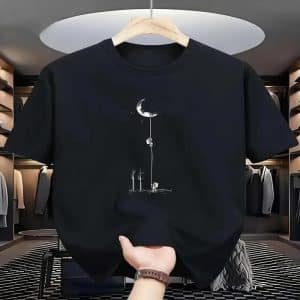 Men’s Cartoon Moon Print Round Neck Tee – Regular Fit Casual Short Sleeve T-shirt for Summer Daily Wear